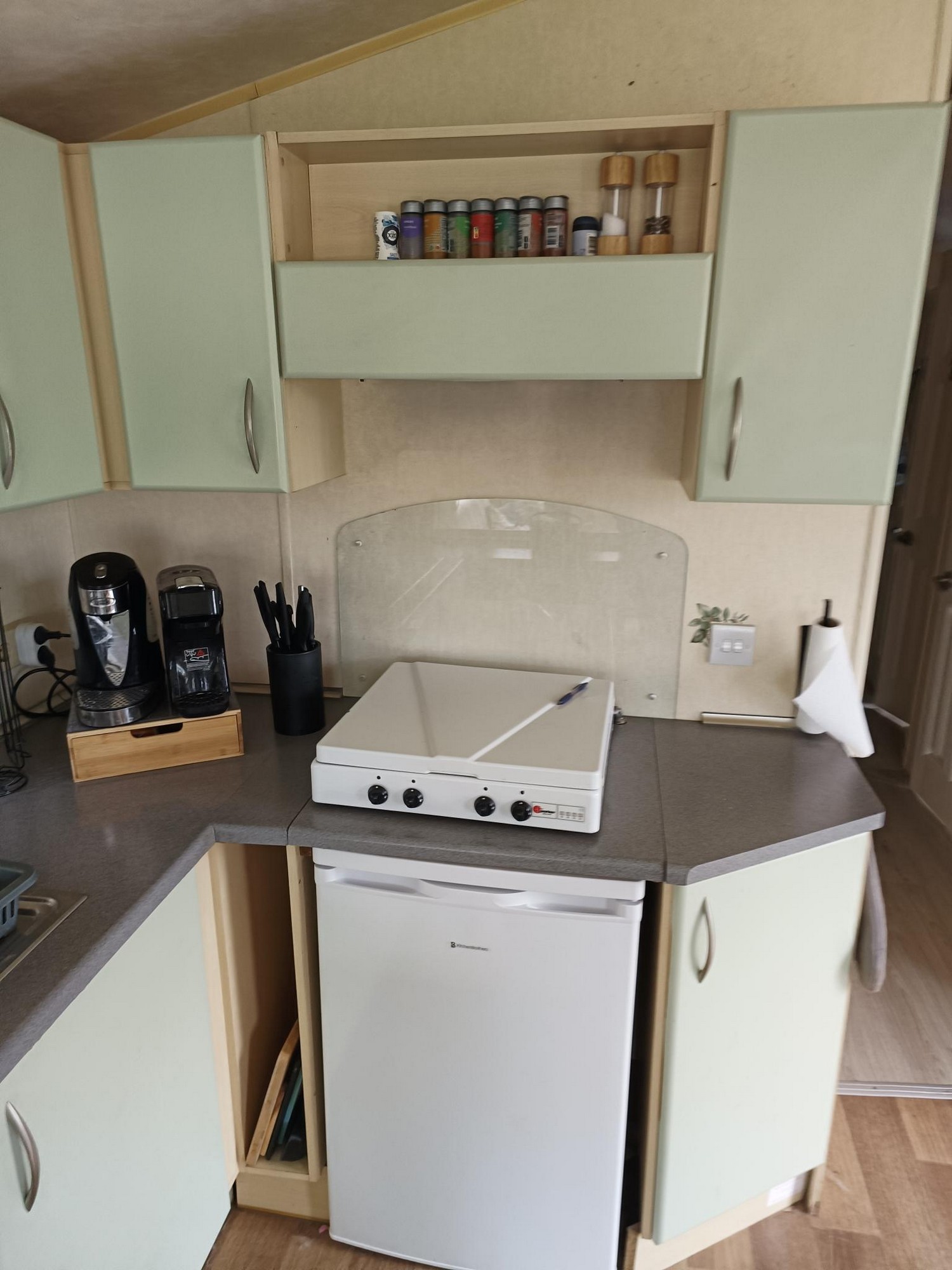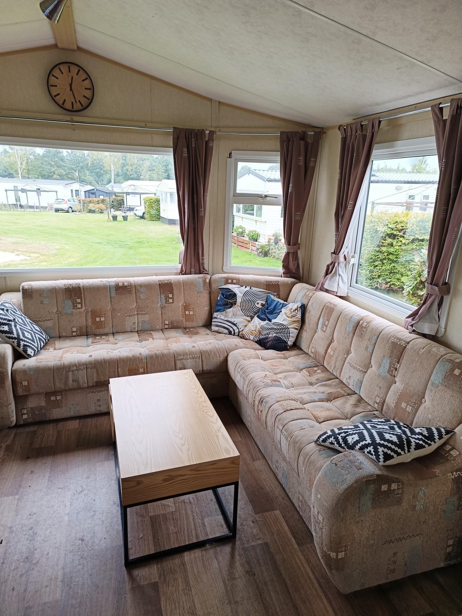 - De hele stacaravan is voorzien van rolgordijnen en/of normale gordijnen.