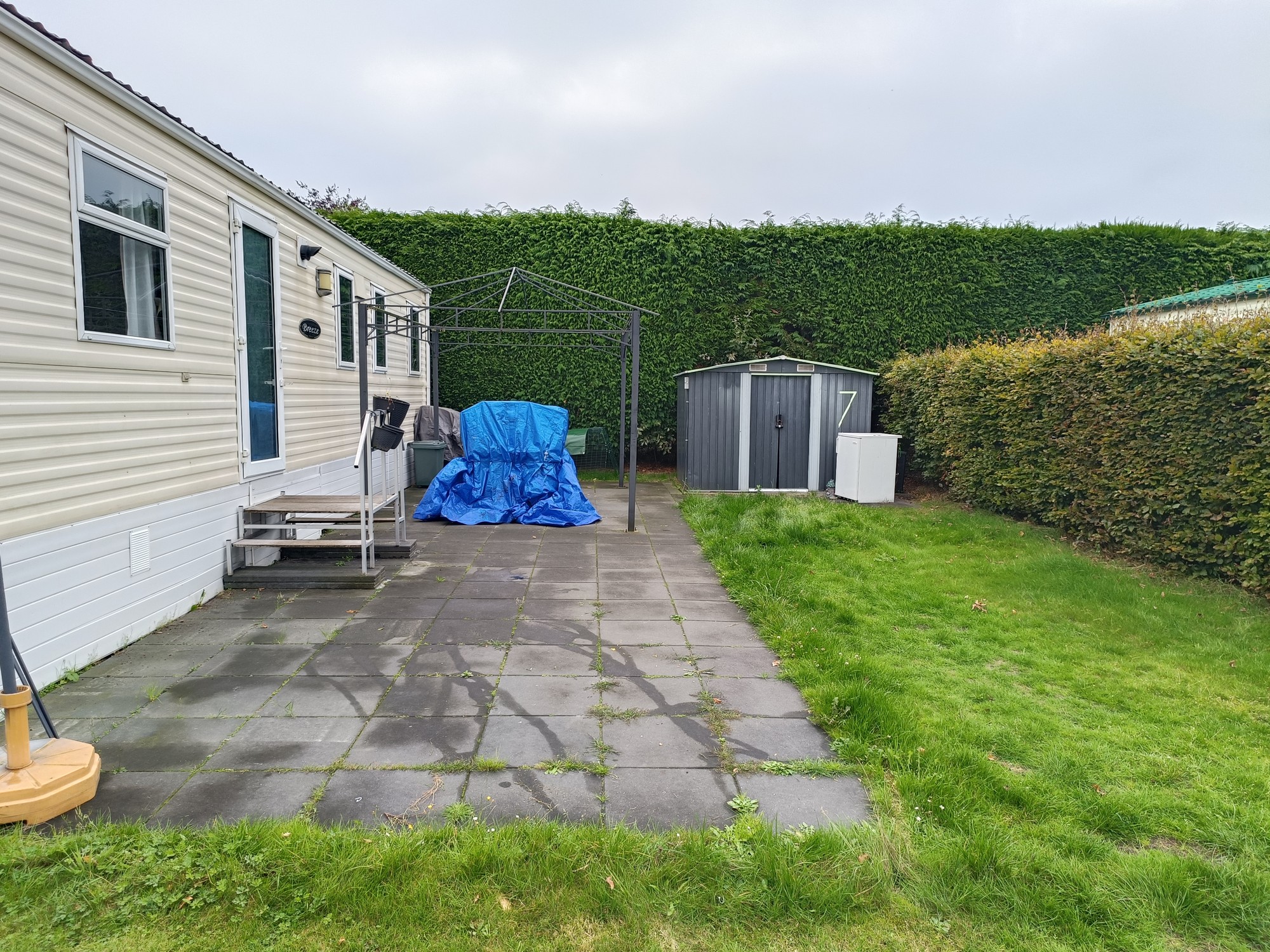- In de tuin staat een metalen tuinschuur inclusief grasmaaier, extra vriezer camping wasmachine, werkbank gereedschapskist, en 2 steppen
